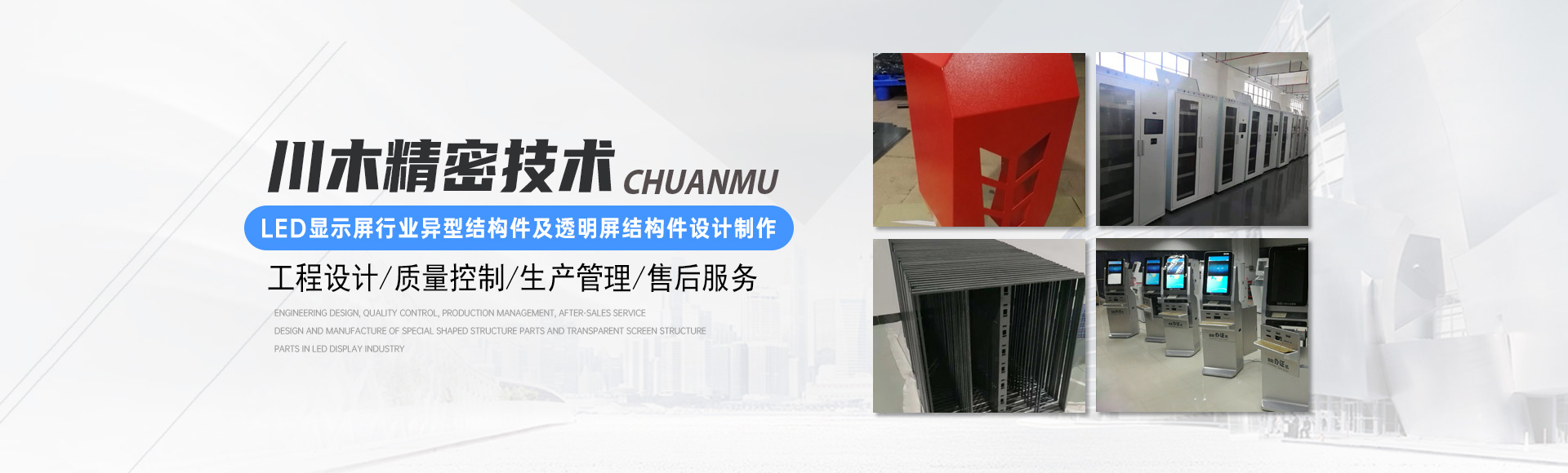 廣東川木精密技術(shù)有限公司位于廣東東莞市,公司于2007年成立,2011年3月從深圳遷往東莞,注冊(cè)資金500萬,工廠面積6000平方員工50多人,建立了ISO質(zhì)量管理體系,有成套的數(shù)控鈑金設(shè)備及噴涂設(shè)備,鋁型材數(shù)控加工設(shè)備,主要從事設(shè)備鈑金外殼及精密鈑金零件設(shè)計(jì)制作,LED顯示屏行業(yè)異型結(jié)構(gòu)件及透明屏結(jié)構(gòu)件設(shè)計(jì)制作,從工程設(shè)計(jì),質(zhì)量控制,生產(chǎn)管理,售后服務(wù),精益求精滿足客戶需求,致力成為你信賴的結(jié)構(gòu)件供應(yīng)商。